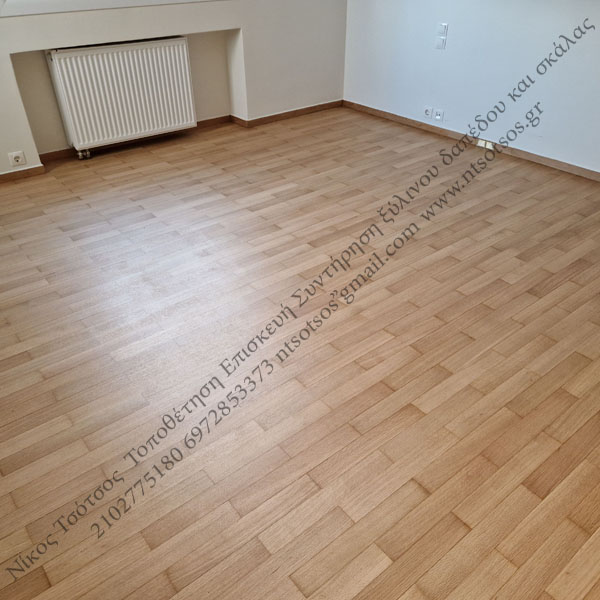 Συντήρηση ξύλινου πατώματος δρυός . Χρησιμοποιήσαμε βερνίκι διαρκείας ultra mat 0%.